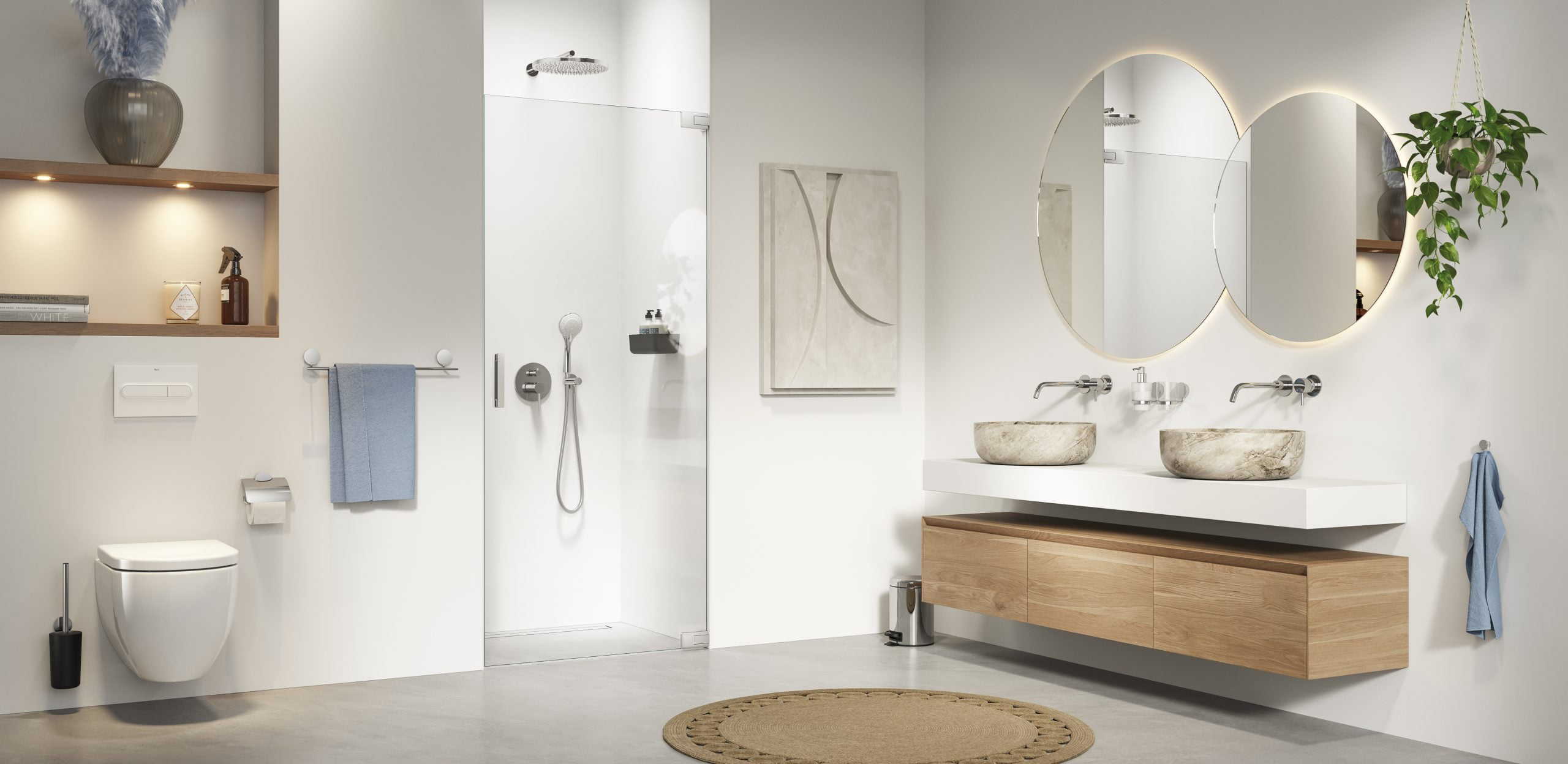 De moderne badkamer kenmerkt zich door eenvoud. Er wordt minimaal gebruik gemaakt van accessoires. Decoratieve accessoires dan. Want badkameraccessoires zijn essentieel voor het comfortabel maken van je badkamer. Ontdek hier een selectie van onze stijlvolle, maar praktische badkameraccessoires om de moderne badkamerlook compleet te maken:
